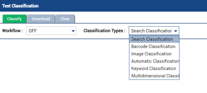 - ON: Classification Types will be disabled, and test classification results will be generated using the batch class configurations. This is the default option.